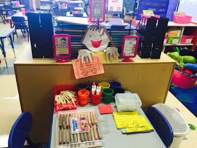 Also inside each folder was a packet of information from the school and forms for each parent to fill out about their child. These forms are filled out during orientation and are given back to me before they leave. This way I have all contact information before the start of the first day. The final thing inside each folder was a fun gift welcoming each student to Kindergarten.