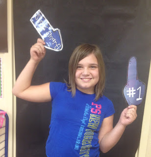 Once everyone had a folder and found a seat, I went over a quick 15 minute Power Point presentation to go over everything that is in the flipbook and a few other important things to help make the year go smooth. Then it was on to the fun part of Orientation Night, the Scavenger hunt from Kim! Inside each folder was a map with a list of stations that they had to visit in the classroom. There was no particular order that they had to be completed in so it allowed for students and parents to freely move around the room at their own pace. Each station had direction signs in these cute little pink frames that I found at Michael’s. Here is a peek at each station: