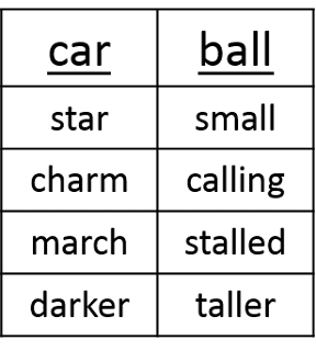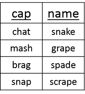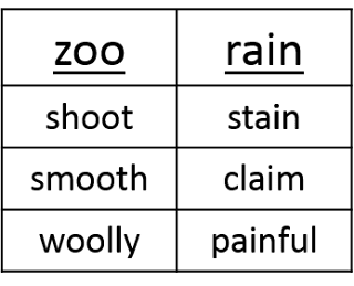 This chapter also offers plans for Word Study. A few activities remain the same with slight changes such as sound boxes with 4-5 boxes and using magnetic letters to build words. But there are also different activities geared towards these readers. One of the activities is the Analogy Charts. These are similar to T-charts. They can be used to teach silent e, vowel patterns, & endings. The students will write the two key words at the top. You will then dictate words with the same pattern for the students to write. These words should be words that students do not know how to write automatically. Here are a few examples from the book.