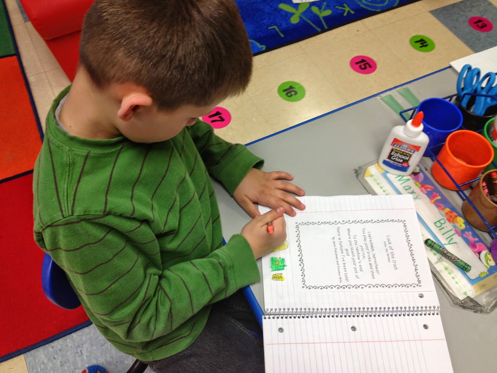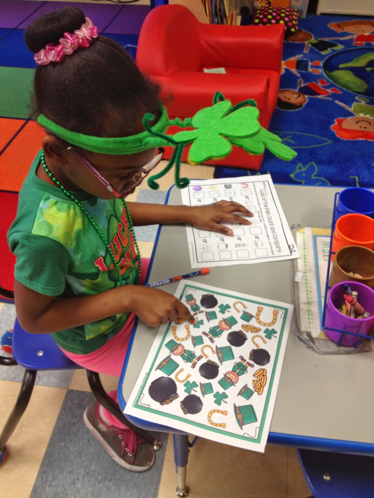 A few weeks ago we celebrated St. Patrick’s Day! This is one of my favorite holidays to celebrate at school. So many fun things to do and learn and the kids love that mischievous little leprechaun. Here’s a look of some things we did that week.
