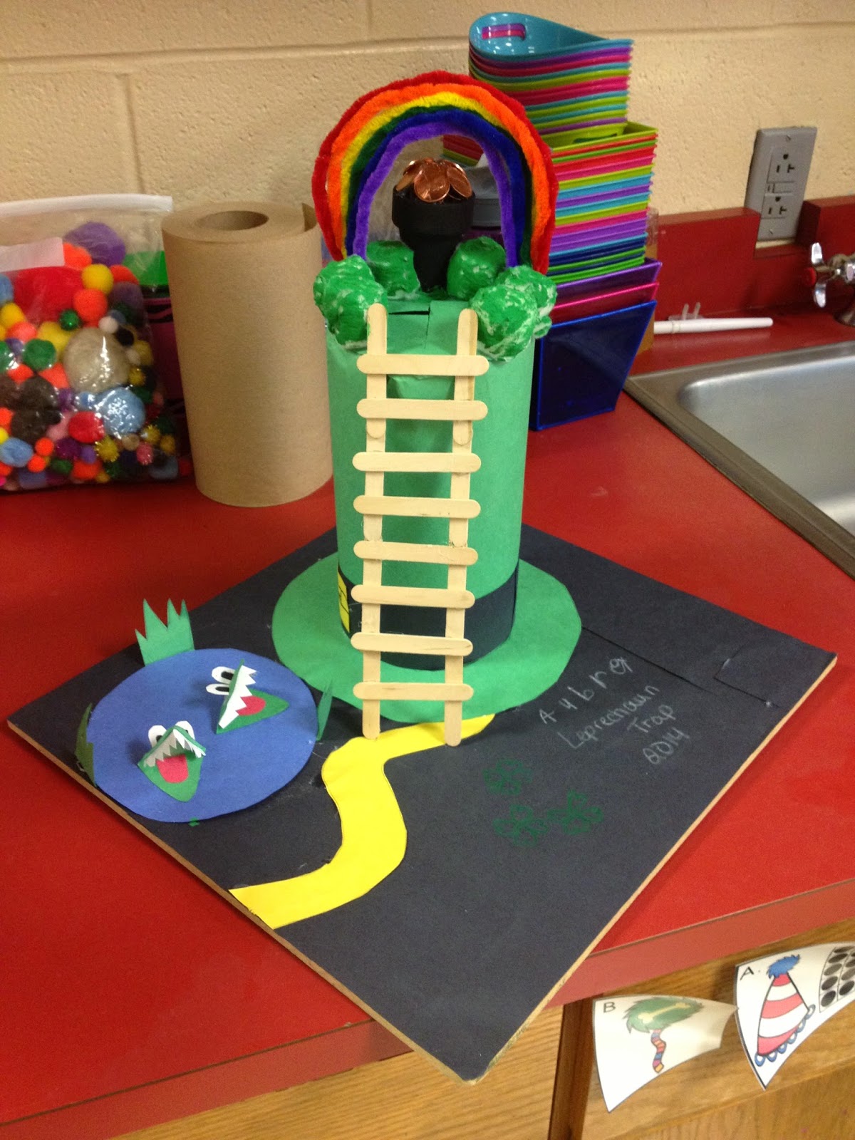 The traps were too cute to send home right away so we had to display them in the hallway for everyone to see.