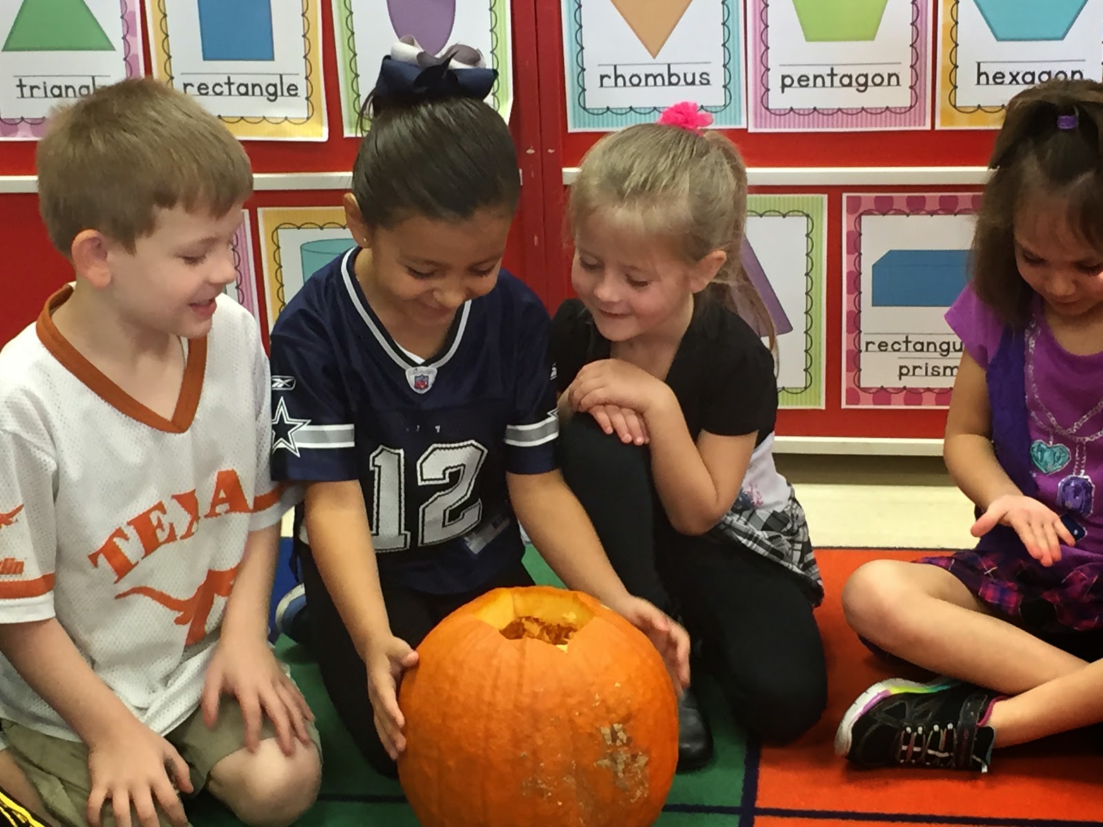 We all voted on how we were going to carve a pumpkin. We used the SmartBoard to place our votes and then the students drew a picture of what our pumpkin would look like based on the number of votes. This was a great, quick, fun assessment to see how well students understood and could interpret a graph. For the SmartBoard activity you can click here to get it for free. And for the data sheet, click here. I do not have pictures of us doing the activity because this was during my formal observation. It went very well!