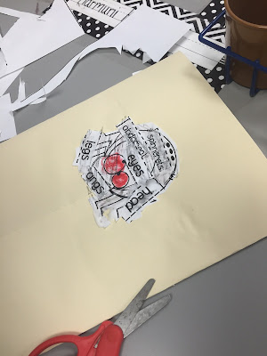 Then we make our own pumpkin to label. We use string for the pulp and actual seeds for the seeds.