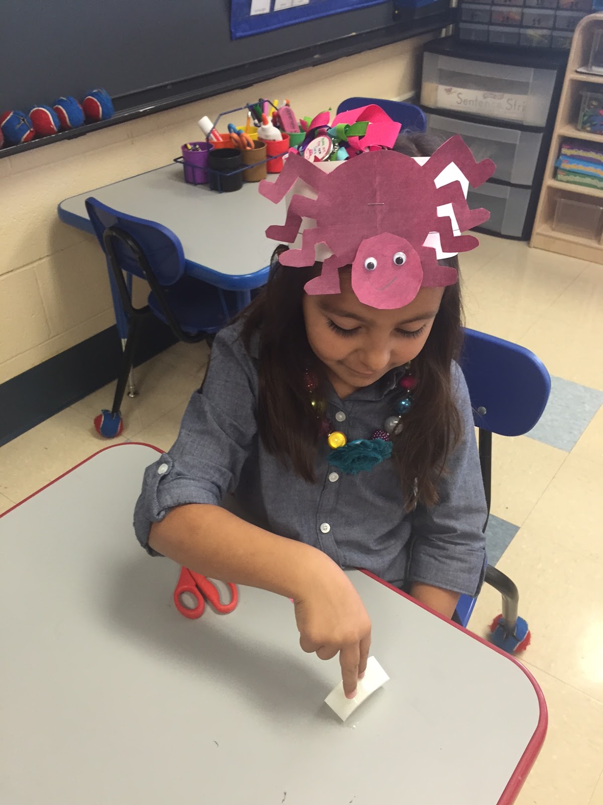 Then we wanted to figure out how spiders eat their prey. In our book, we learned that when a spider bites its prey, the venom turns the prey into a liquid so the spider can “drink” the prey. To test this, each child gets a prey, or sugar cube, and tries to drink it through a straw. When this does not work, we inject the prey with venom, aka water, then try to drink the prey. Success!!! These hands on activities really help students understand and remember these spider facts and they love them!!!