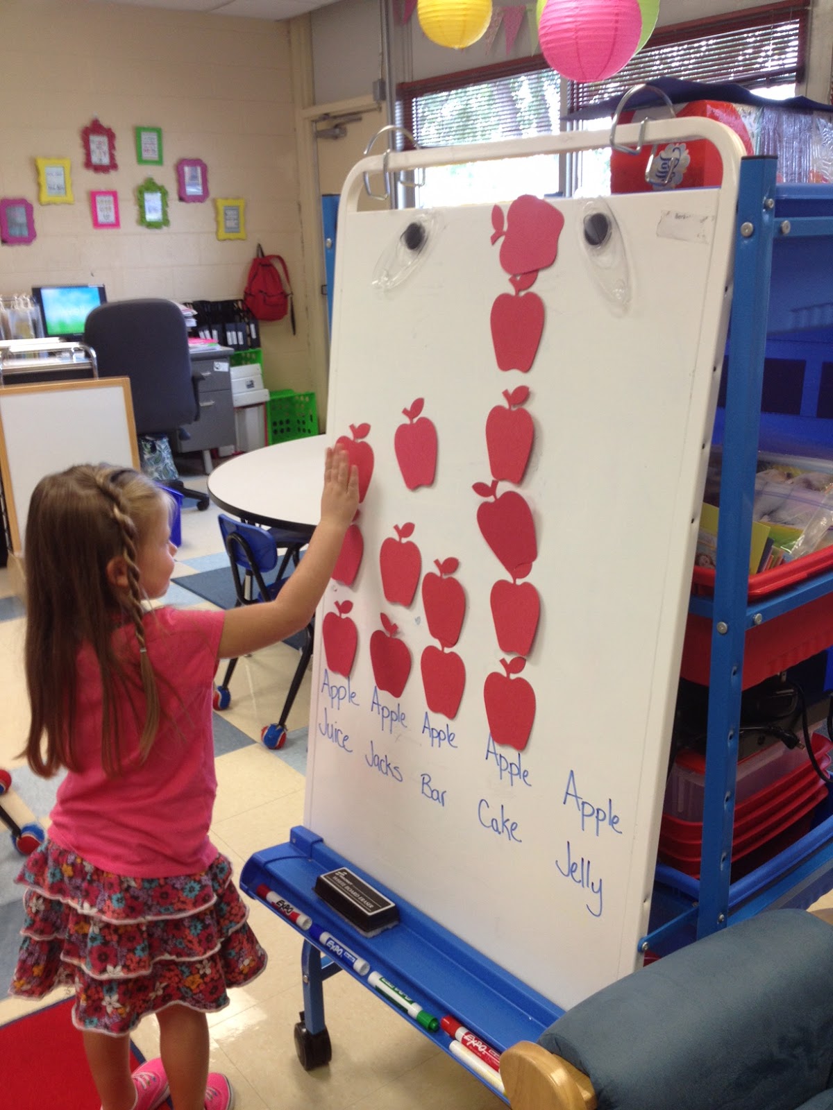 After we read the story, it is time to dive into more hands on learning! We pass around a pumpkin and start with just the outside and tell about what the outside of the pumpkin looks like and feels like. Then it is time to cut the pumpkin open and dig our hands into the ooey gooey inside and describe what we see and feel. I love watching the kids expressions as they stick their hands into the pumpkin. We record all of the different words they use to describe their pumpkin onto chart paper.