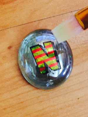 First step is to place one letter sticker onto each stone. I placed mine on the top curved part of the stone.