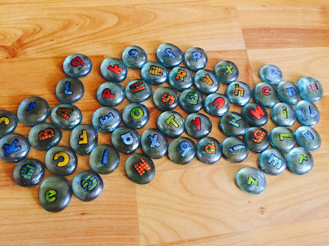 Let them dry and you now have your very own set of letter stones to use with any games or resources that you have. They can be used individually to spell words, practice letter/sound recognition, letter/sound identification, and so much more.