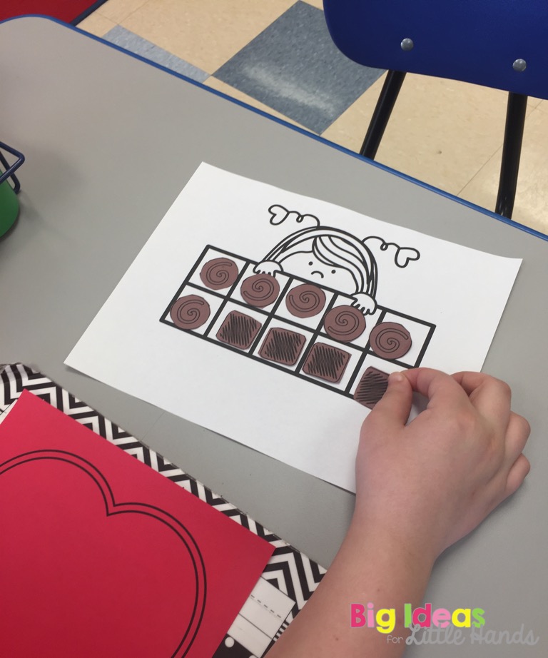 Once their ten frame was filled, they glued their chocolates to their Valentine’s Day box.